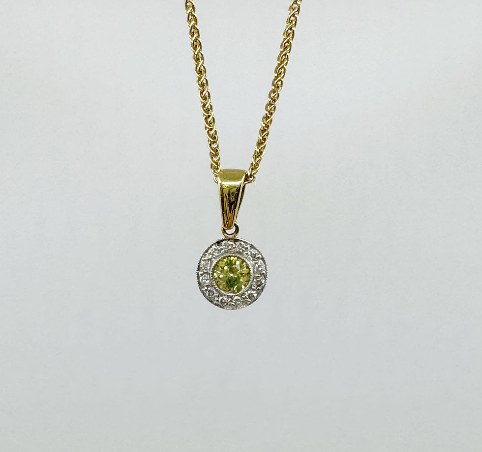 18ct yellow gold, yellow diamond and diamond necklace - 16" chain
